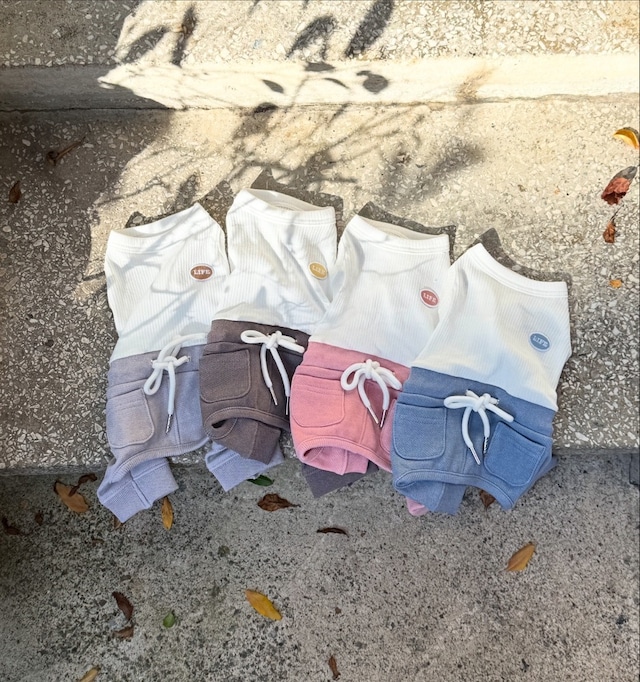 【 THE REST OF LIFE 】 ジョガーパンツについている紐の端処理は、ほつれがない高級な副資材で、 ペットに全く負担をかけない軽量な素材です。 【サイズ】 画像参照 サイズ・背の長さ・胸囲・推奨体重 S・23cm・33cm・2 ~ 3kg SM・26cm・35cm・3~ 3.5kg M・29cm・38cm・3.5~ 4.5kg L・32cm・41cm・4.5 ~ 6kg XL・36cm・45cm・6 ~ 8kg 2XL・40cm・49cm・8~ 11kg 【Attention】 各製品内部に付着した洗濯記号を参考に洗濯してください。 製品の性質上、できるだけ手洗いをお勧めします。 生地の性質上、洗濯時に若干の収縮が生じることがあります。 運動量の多い子供の場合、重度の摩擦により毛羽立ちが発生することがありますのでご注意をお願いします。 水温30を標準で弱く手洗いしていただくことをお勧めします。 弱アルカリ性洗剤(一般石鹸、ベビー洗剤など)を使用すると水抜けがある場合がありますので中性洗剤をご使用ください。 塩素漂白は不可能です。 アイロンの使用が可能で、乾燥時に日陰で乾かすことをお勧めします。 【fabric】 cotton 100%