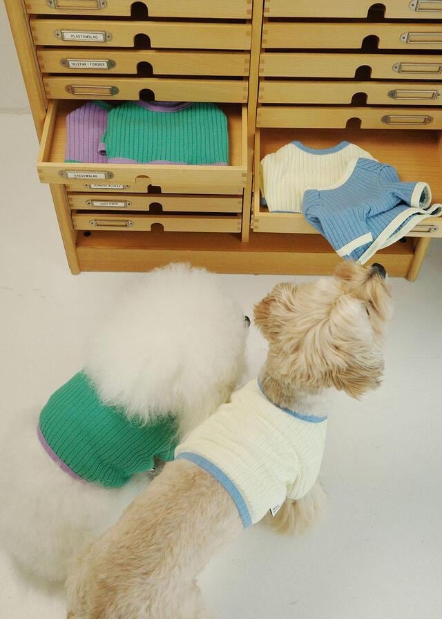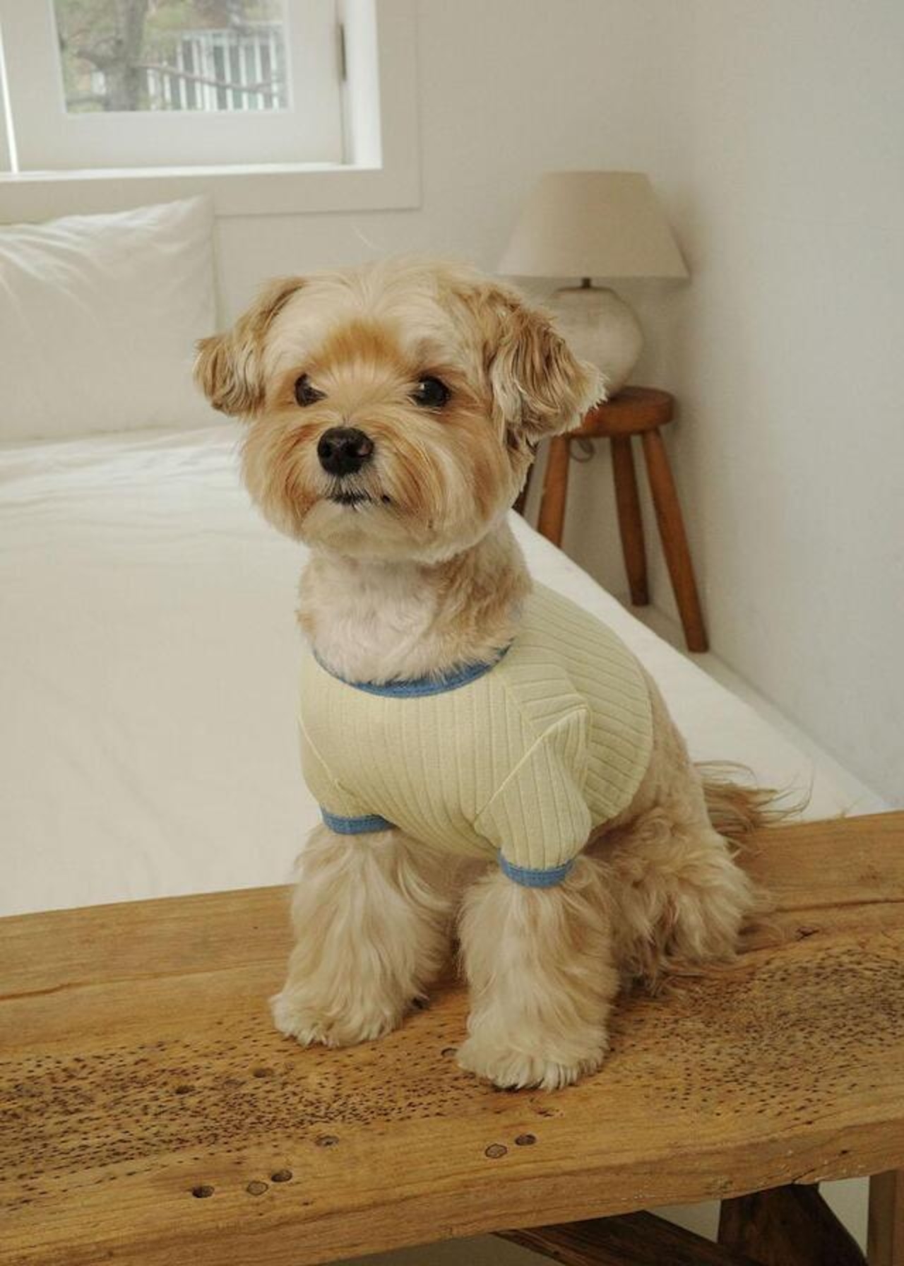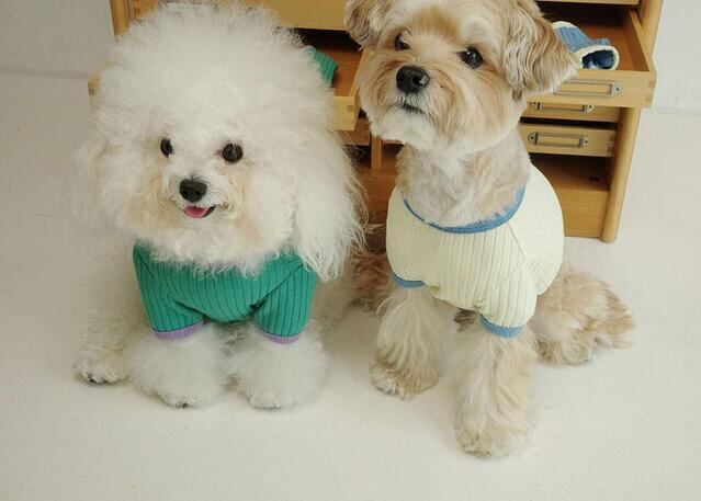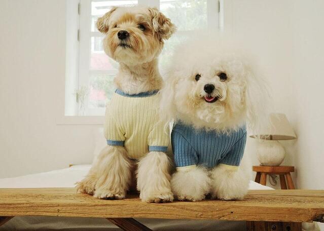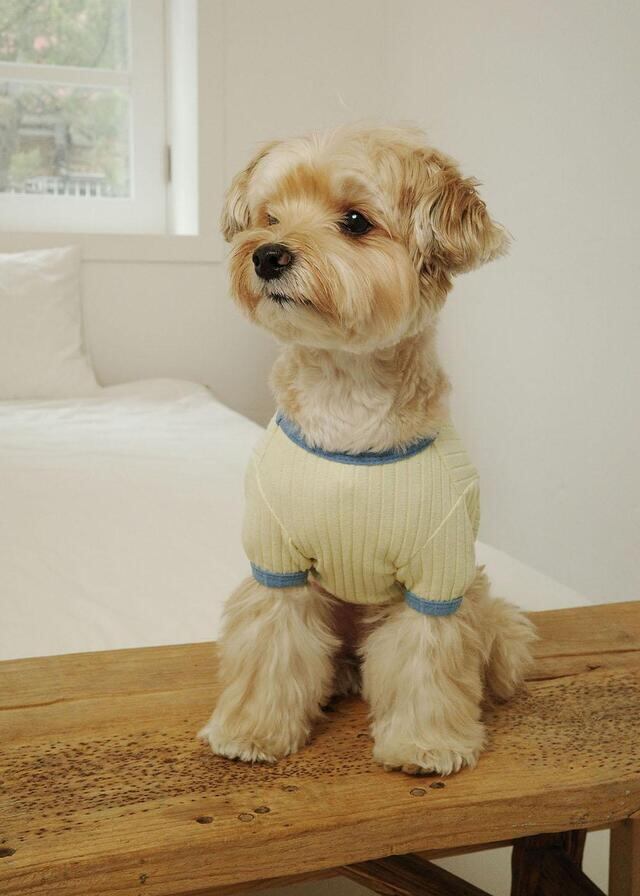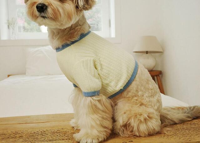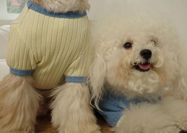 - モデル(ビション)Lサイズ着用/首周り30/胸囲41/背丈30/体重4.5kg
