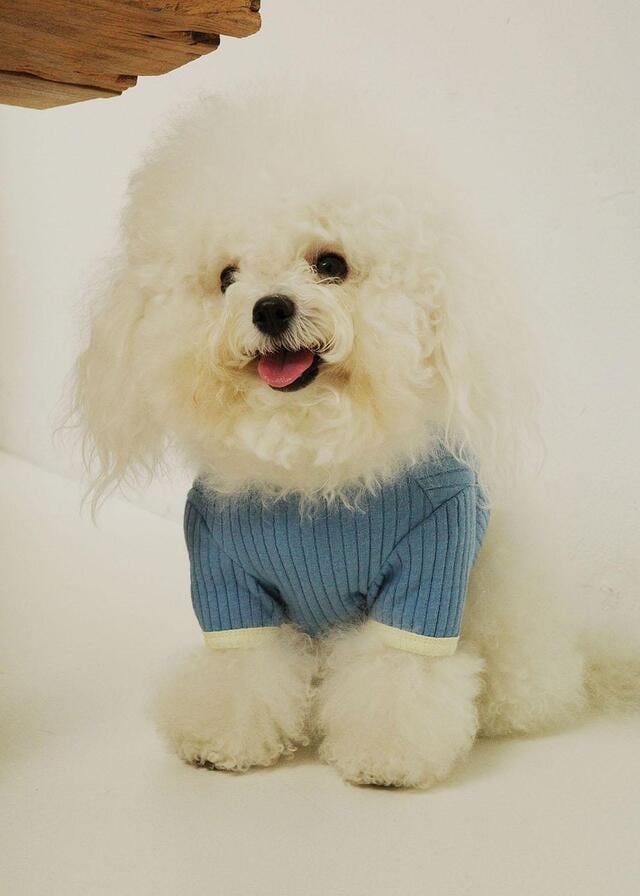 - モデル(ビション)Lサイズ着用/首周り30/胸囲41/背丈30/体重4.5kg