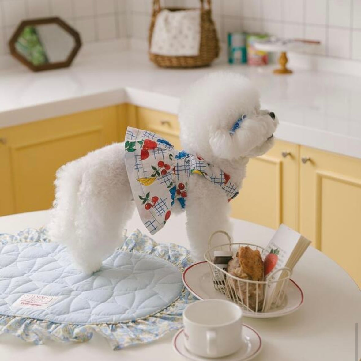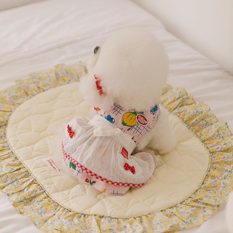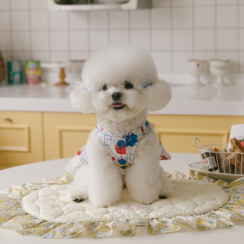 バターの香りのようにあたたかい空間をつくるフリルピクニックマット。
