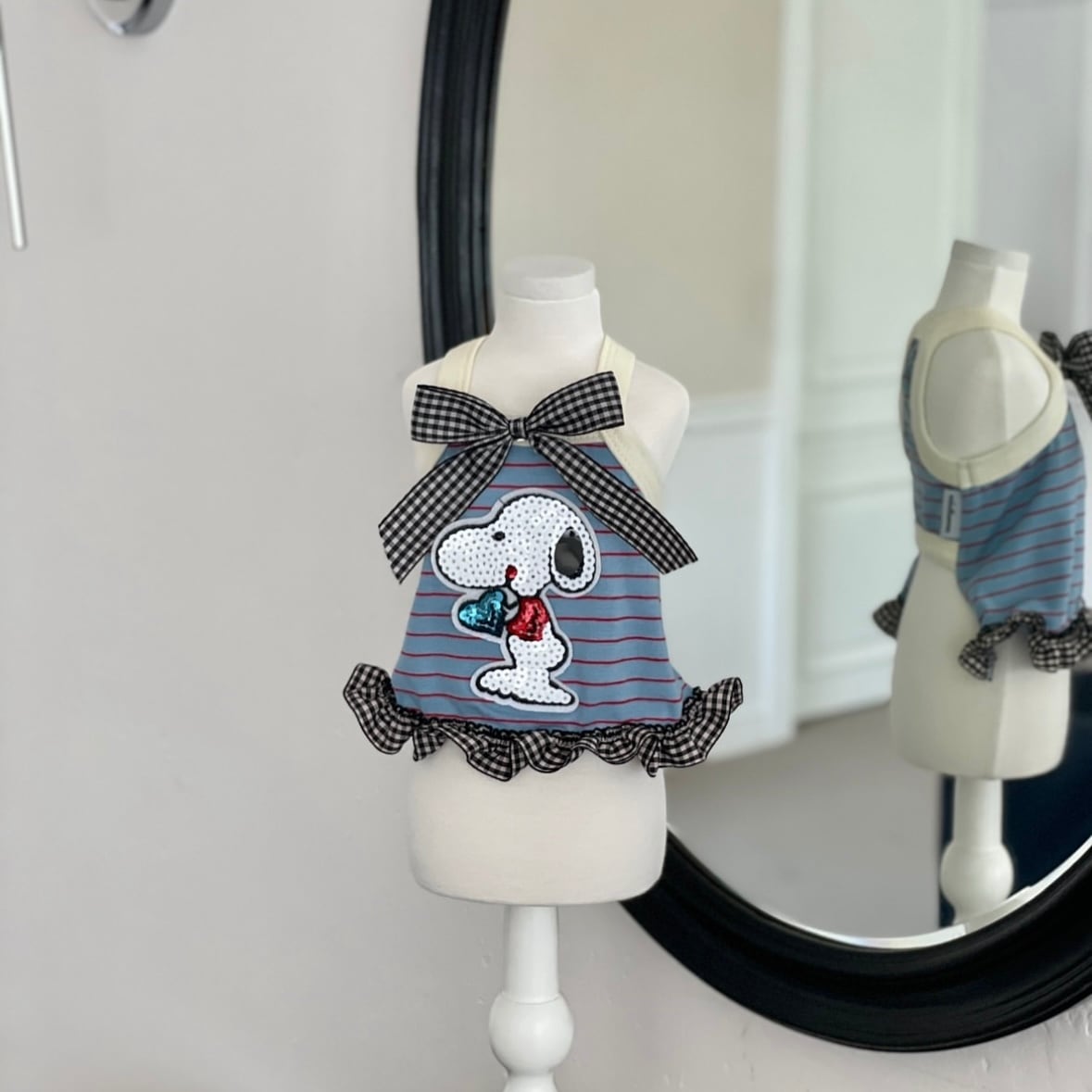 ストライプ+チェックの組み合わせの可愛くてさわやかなタンクトップです