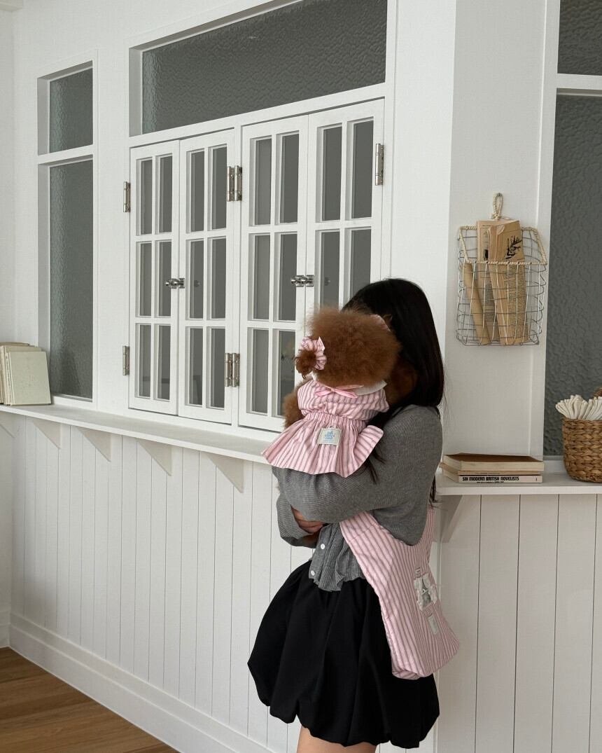ドレスやビスチェと同じ生地で作られているので、愛犬とのリンクコーデにもぴったりです。