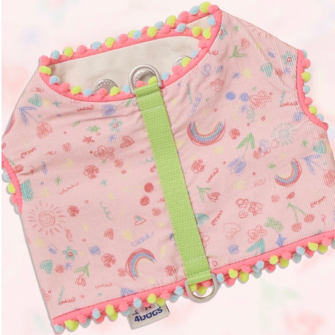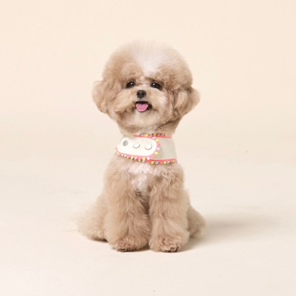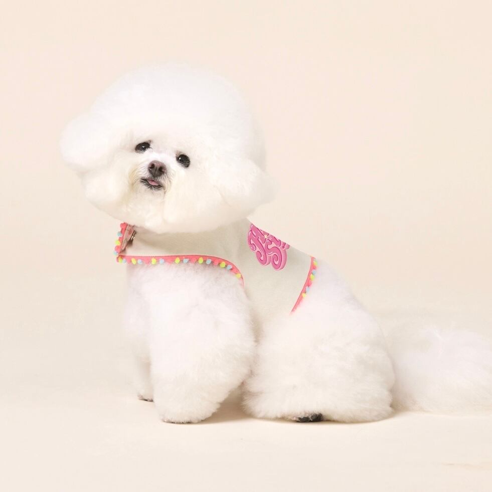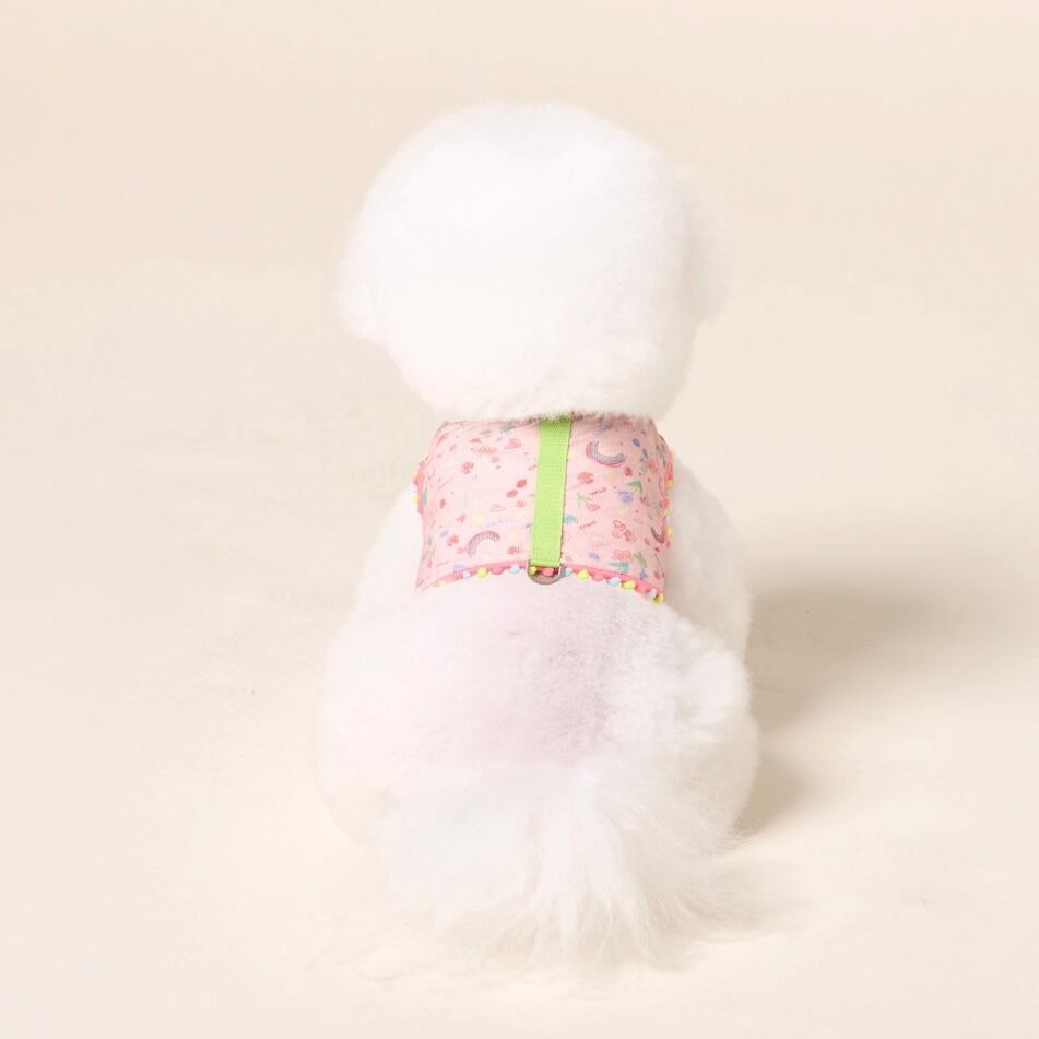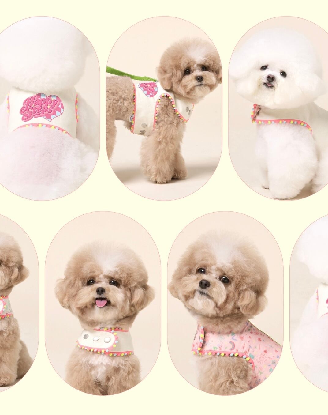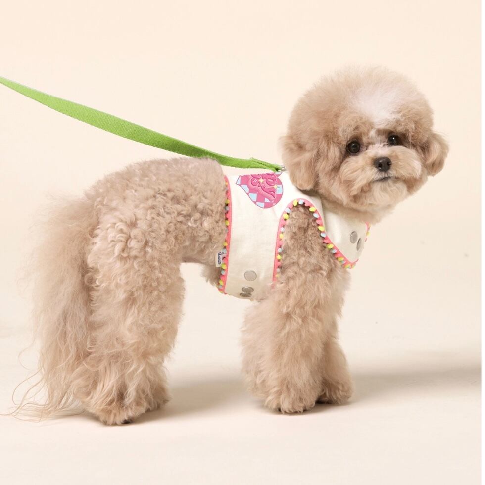 玄関の前で尻尾を振り、足をコロコロと動かす…その愛らしい瞬間をイメージして作られた、特別なハーネスです。