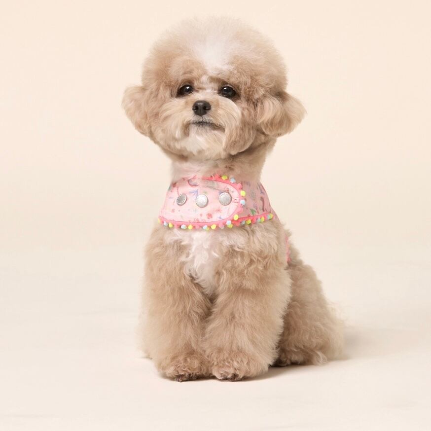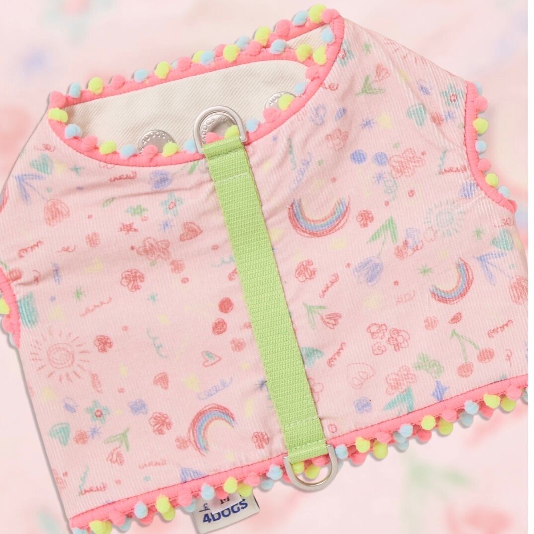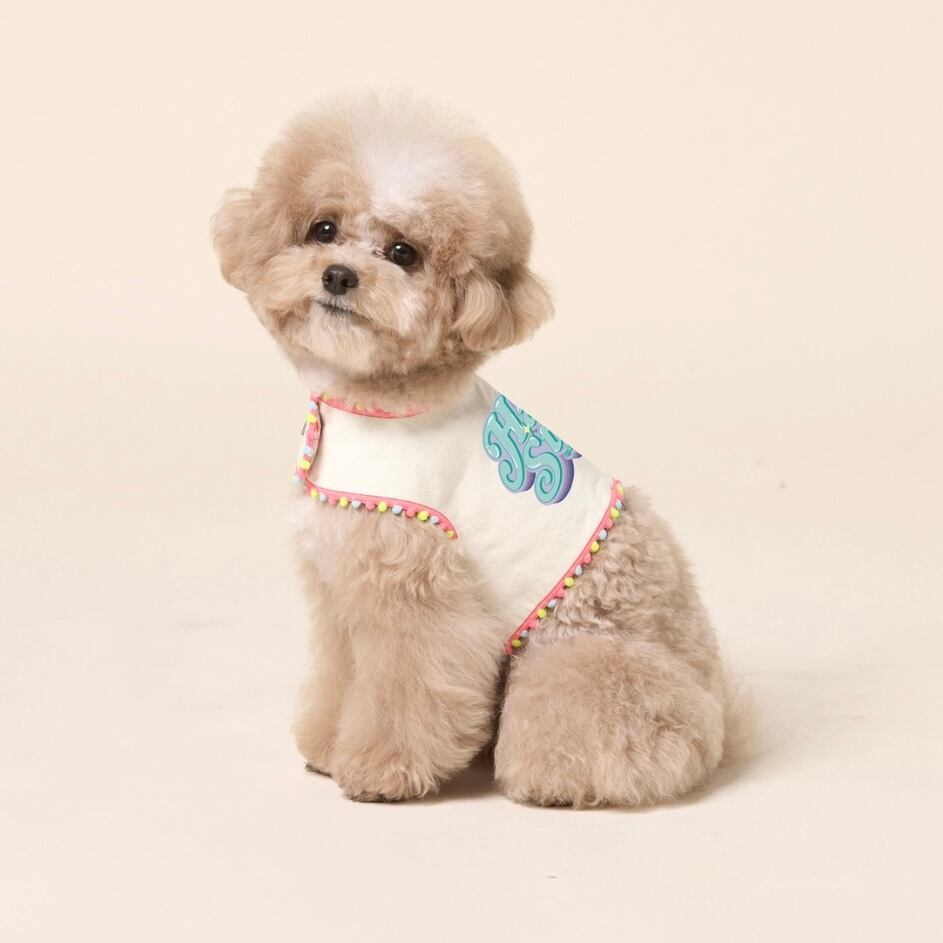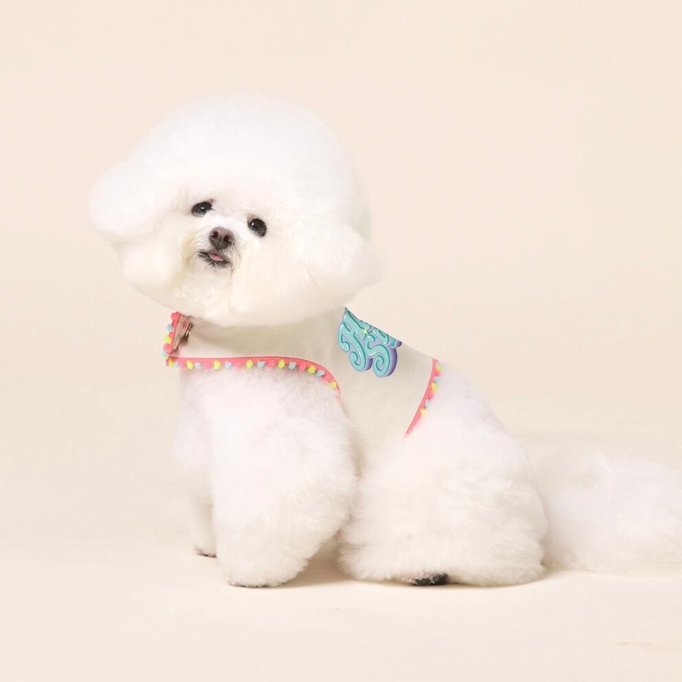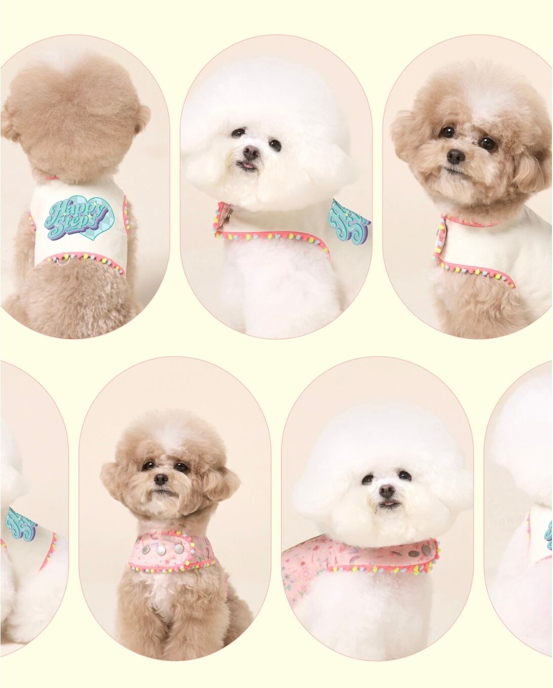 玄関の前で尻尾を振り、足をコロコロと動かす…その愛らしい瞬間をイメージして作られた、特別なハーネスです。