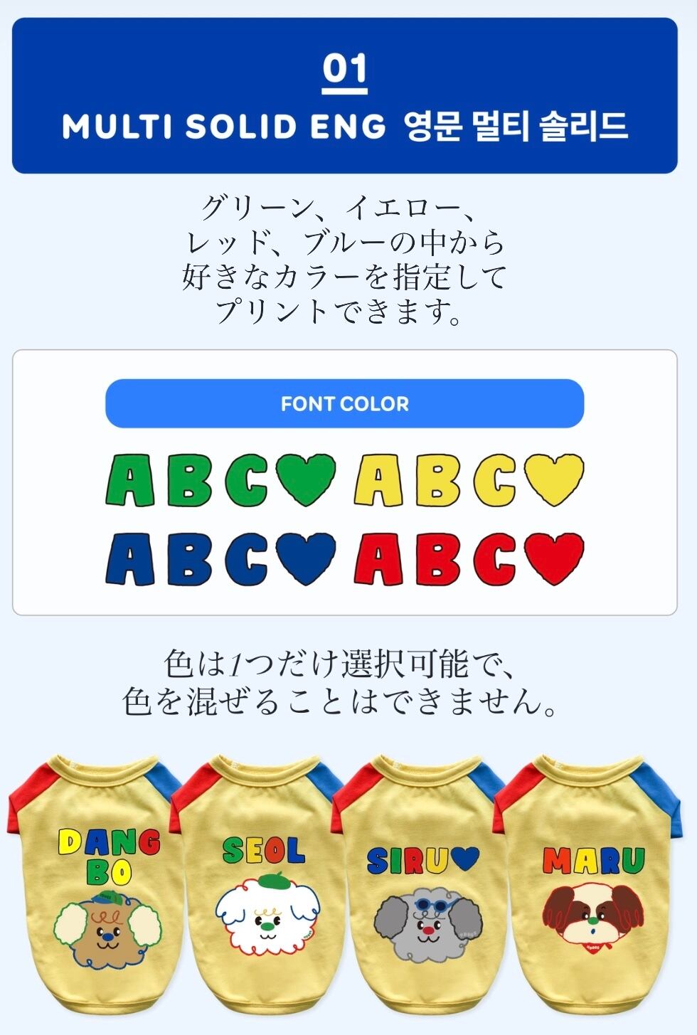 ・英語フォント2種類+ハングルフォント1種類をご用意。