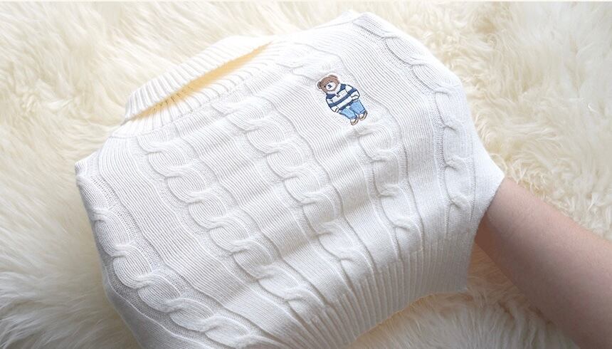 胸元のクマの刺繍がワンポイント。愛らしさをプラスするアクセントに。
