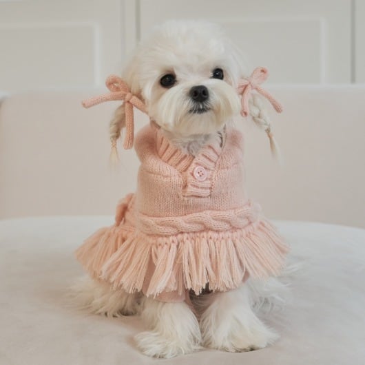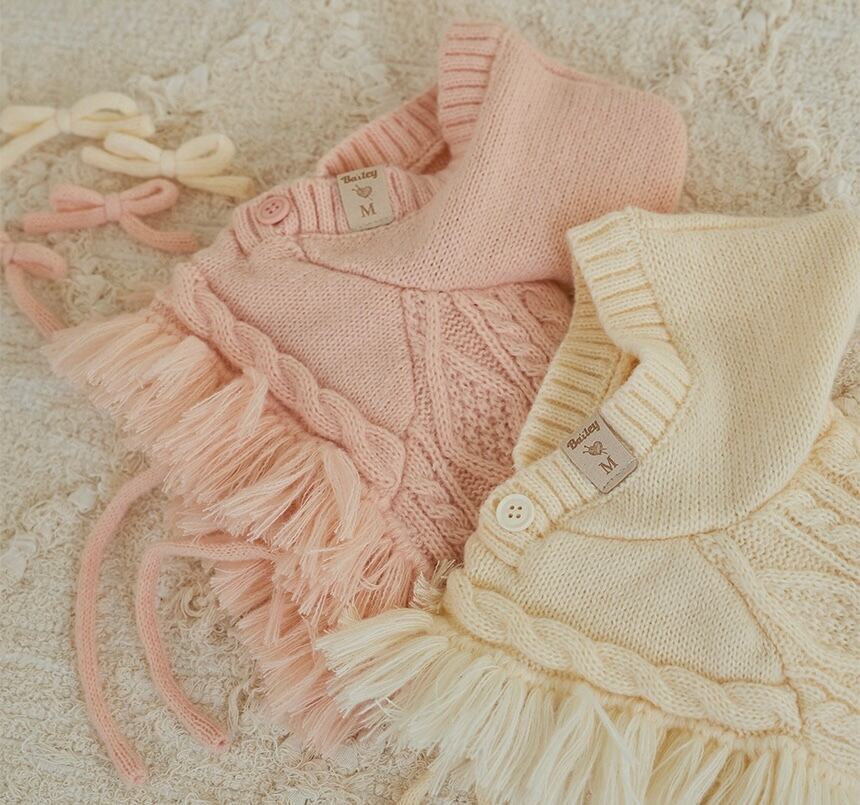 ブリーズニットに繊細なハンドメイドタッセルとケーブル編みをプラス。ナチュラルで可愛い雰囲気を演出。