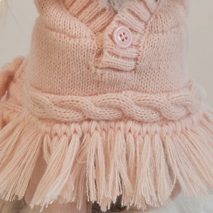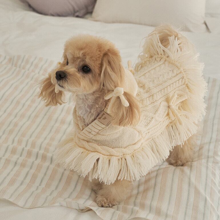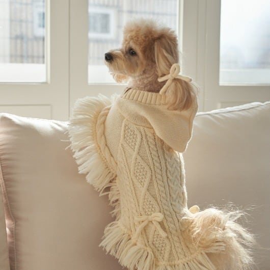 ブリーズニットに繊細なハンドメイドタッセルとケーブル編みをプラス。ナチュラルで可愛い雰囲気を演出。