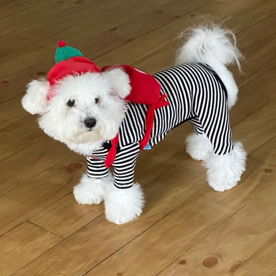 ホリデーにぴったりなクラシックなカラーコンビネーションで仕立てた、ストライプ柄のオールインワンです。
