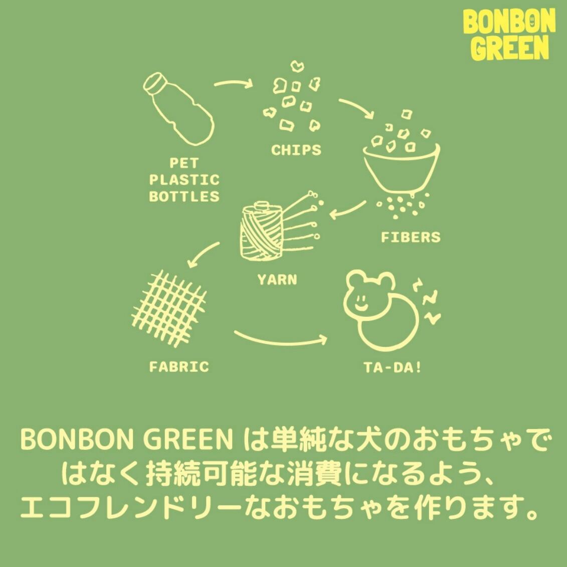 BONBON GREENは、単なる犬のおもちゃではなく、持続可能な消費につながるように企画されたエコフレンドリーなトイシリーズ。