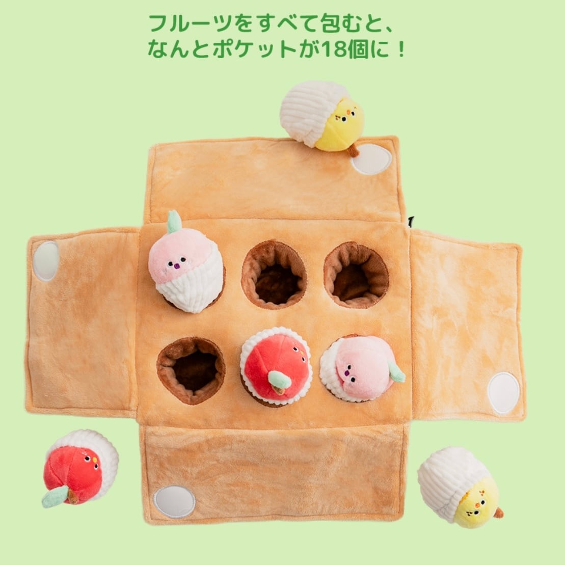 ふわふわで噛みやすいフルーツたちがたっぷり詰まったノーズワークトイ。