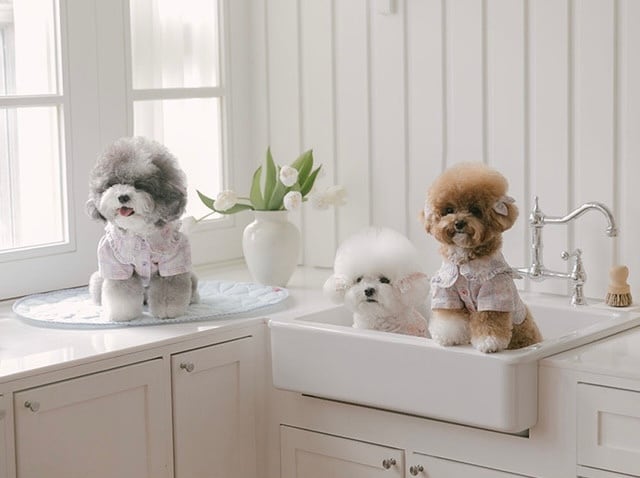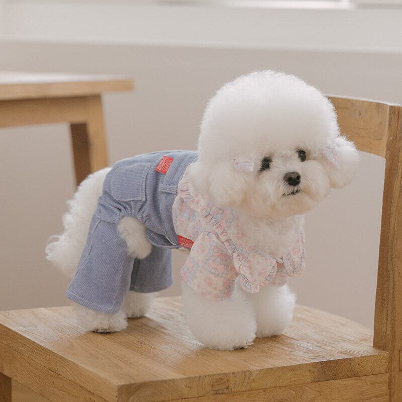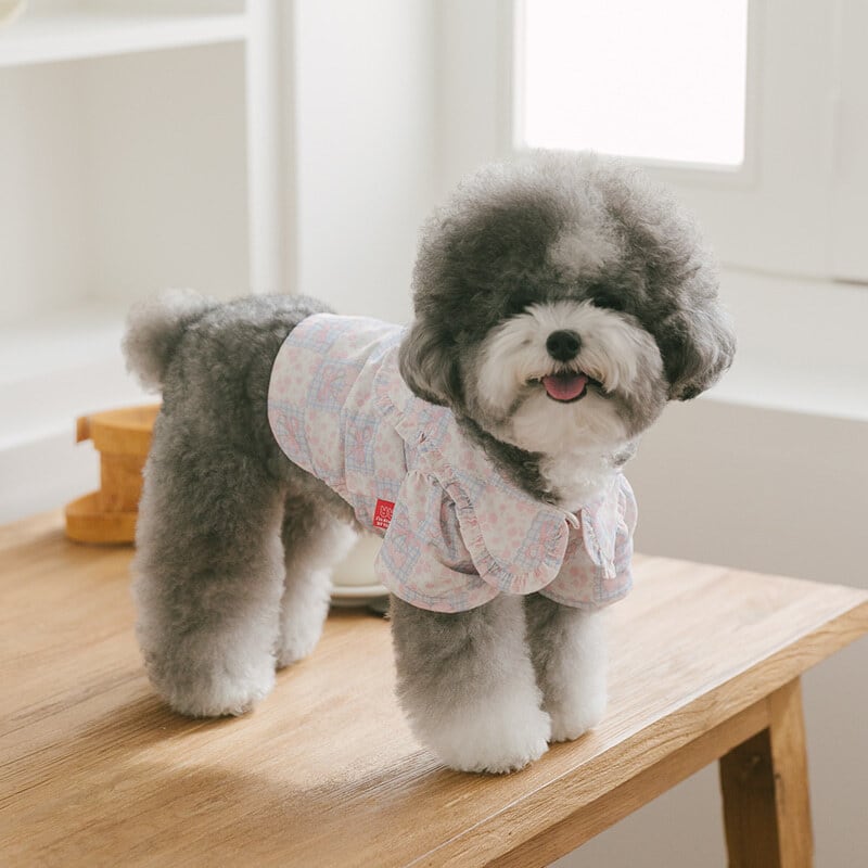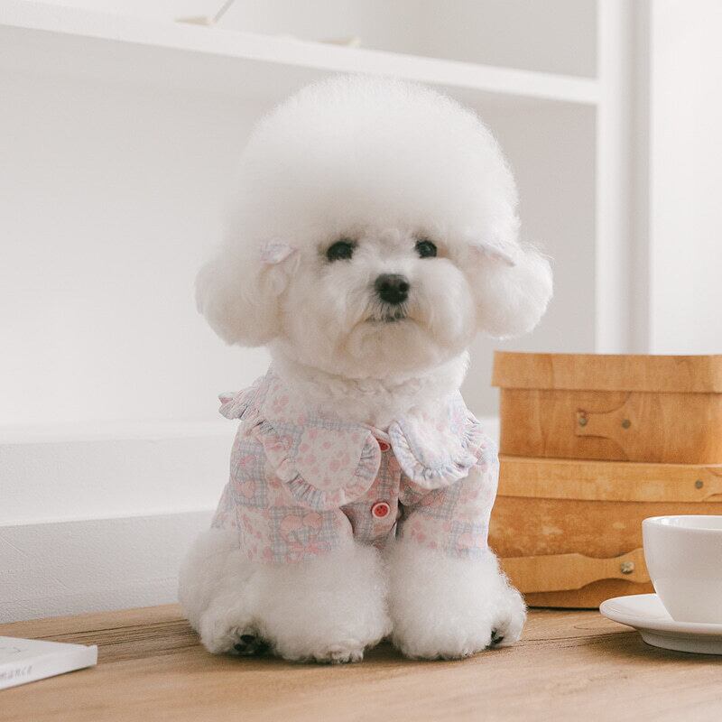 丸みのある襟と控えめなフリルが柔らかい印象を与えます。