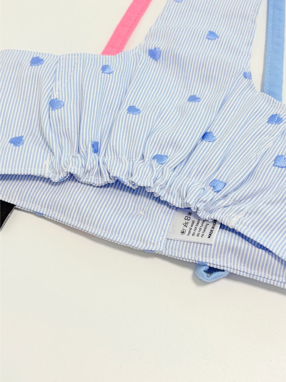 トップスは、ショルダーストラップを通して結ぶデザイン