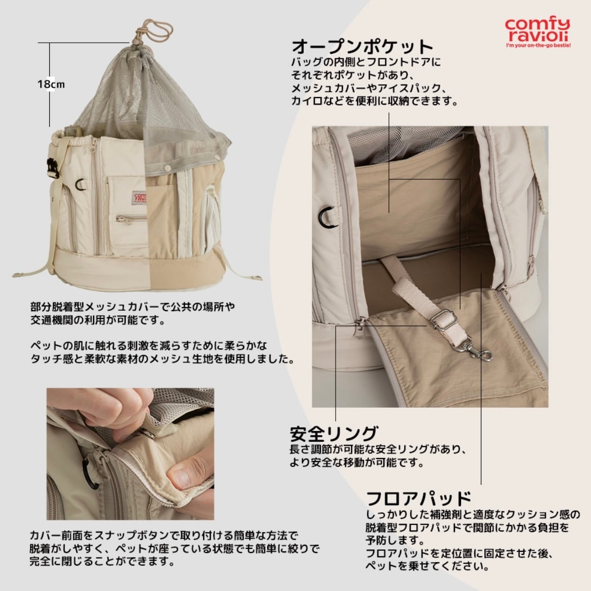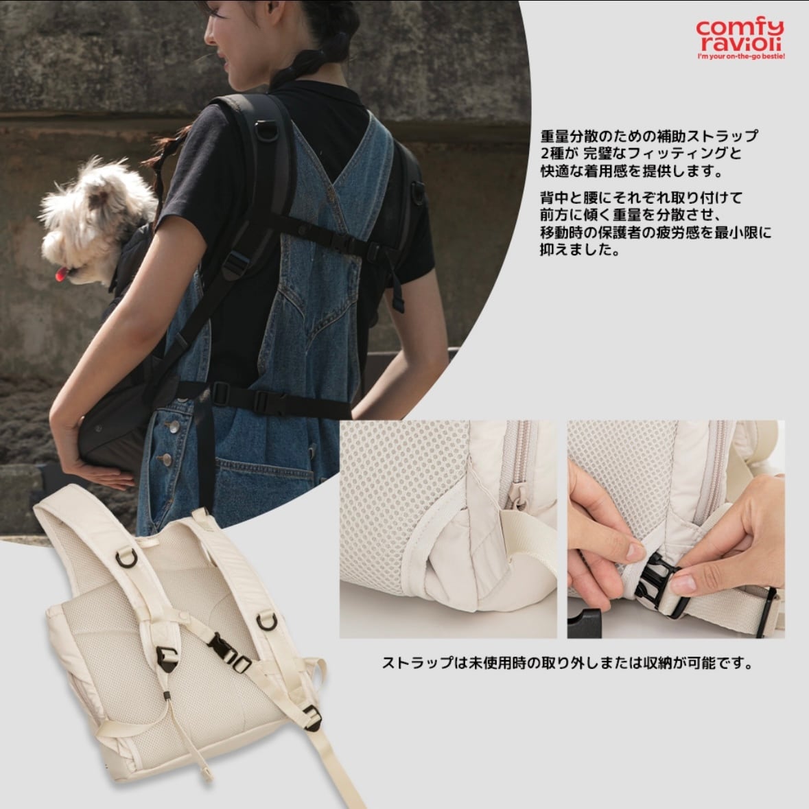 ・安定した構造:傾き防止用ストラップで、ペットの姿勢をしっかりサポート