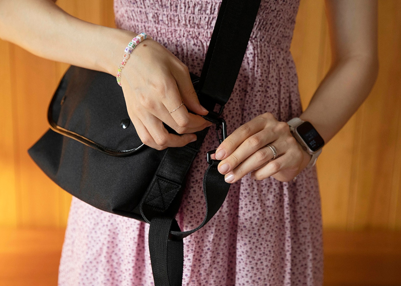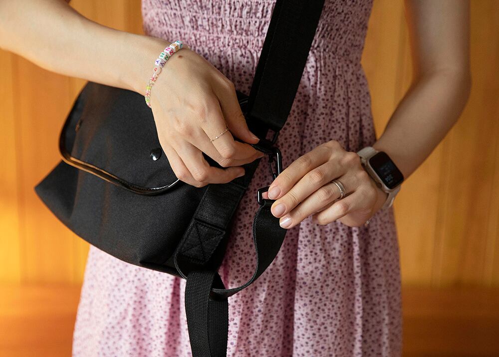スーツケースの側面にフックにリード線をかけて、快適で安全に歩くことができます。