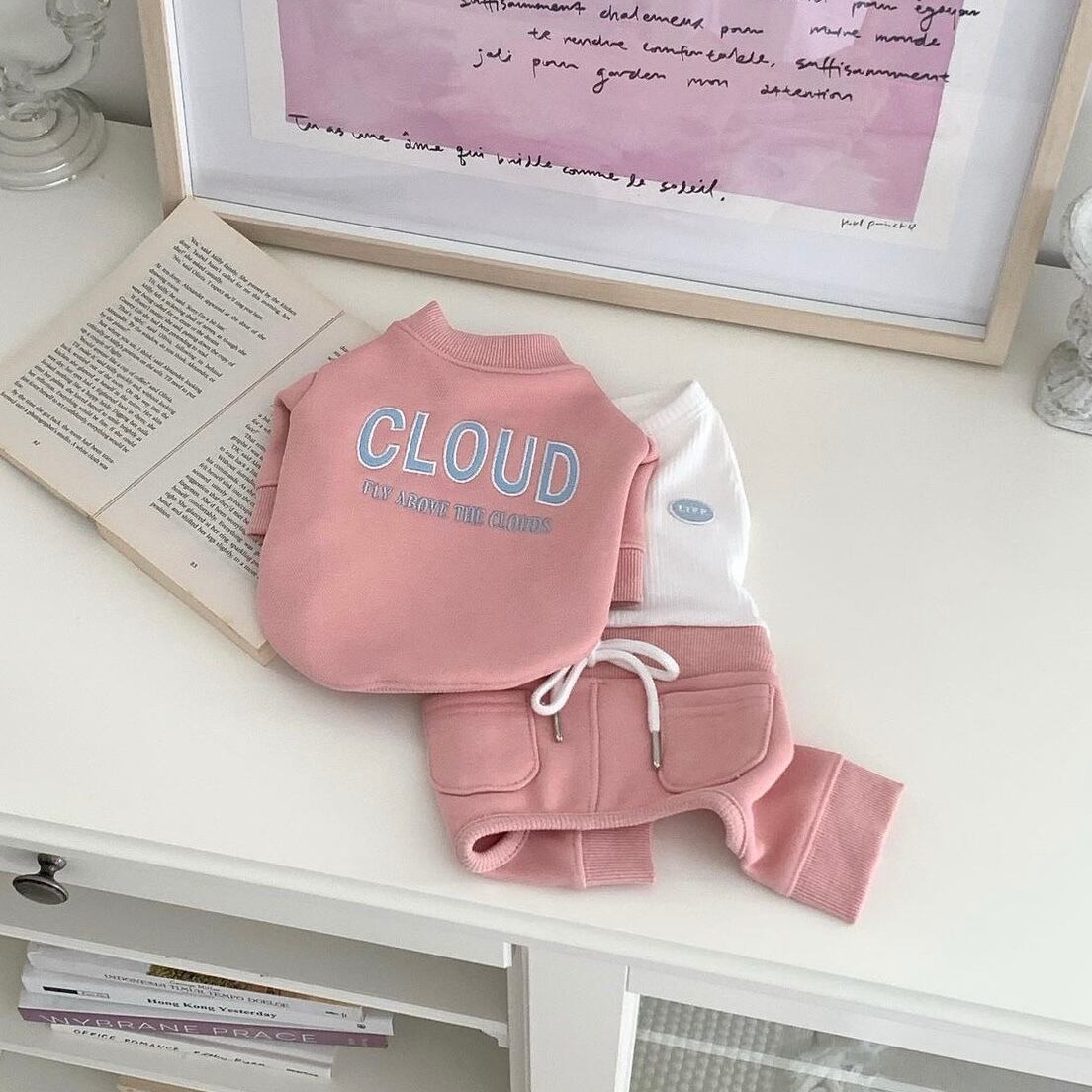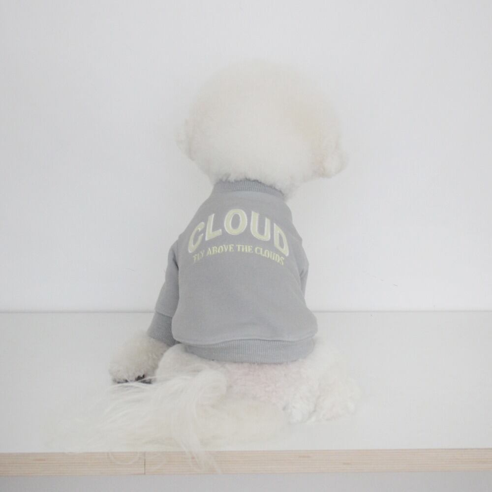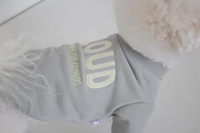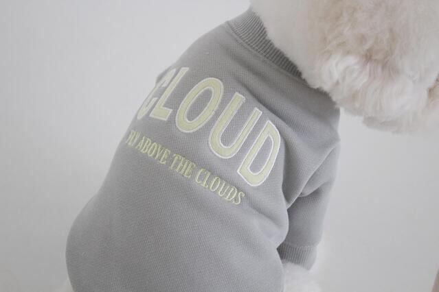 可愛らしい配色の「CLOUD」フェルト刺繍と、雲の上をふわふわと飛んでいる「Fly above the clouds」という文句が一緒になっています。