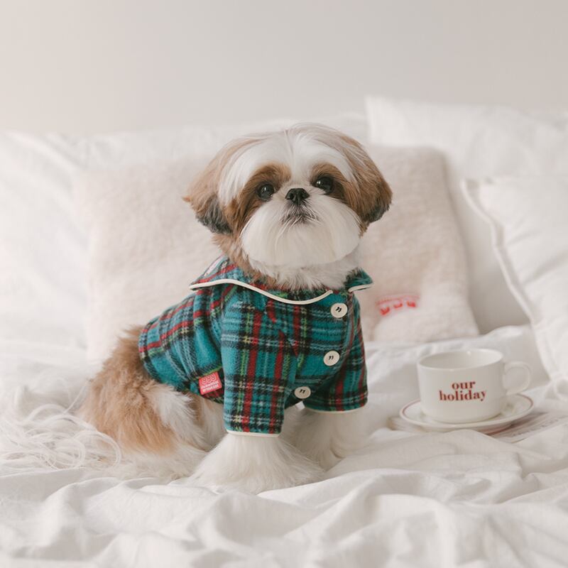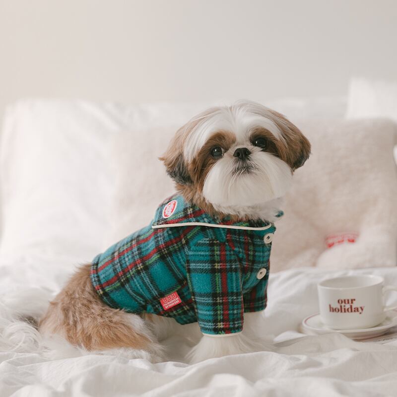 クリームカラーのパイピングがチェック柄にアクセントを加え、可愛さと上品さを両立。さらに、カラーポイントが胸をときめかせます。分厚い生地なので、冬の散歩や外出にも最適です!