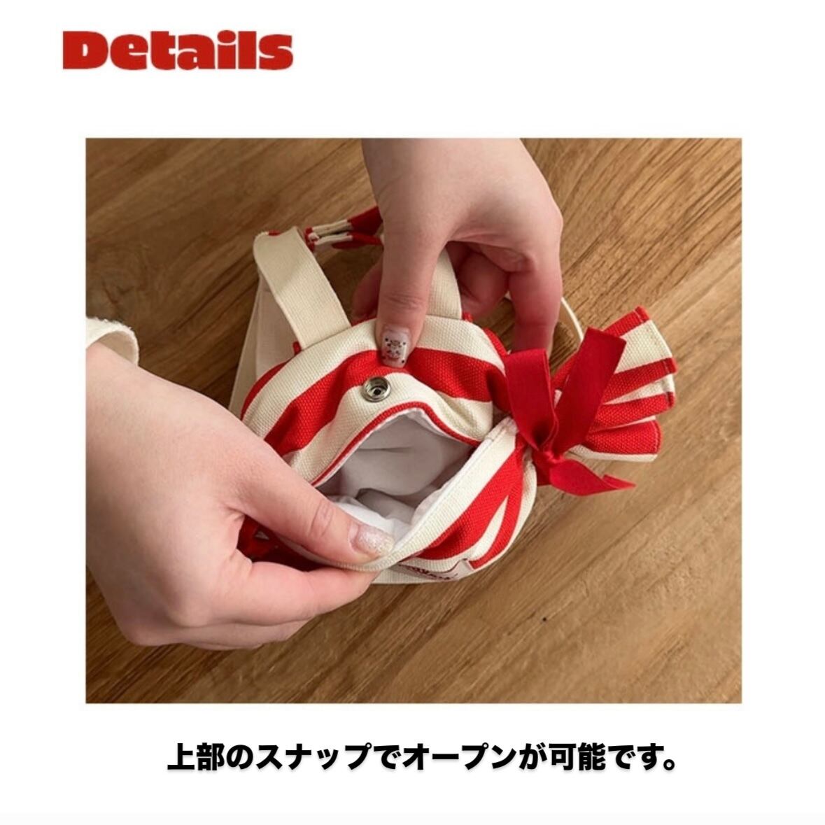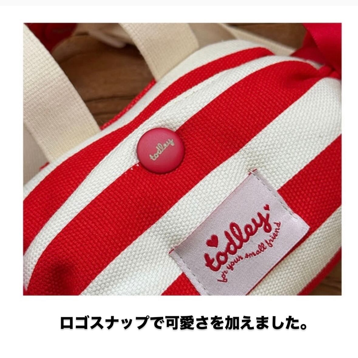 カチッと簡単に開閉できるスナップ付きの可愛いキャンディ型バックパックです。