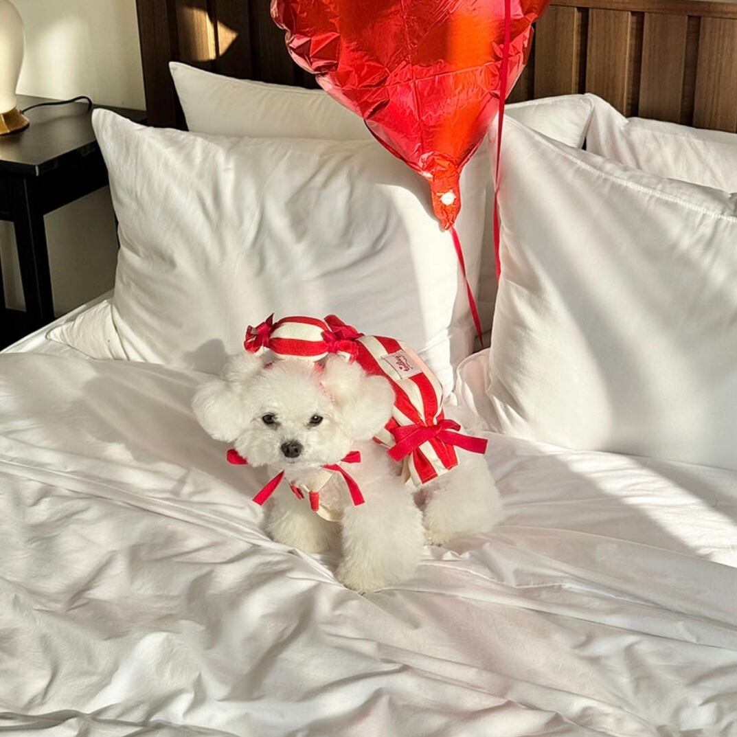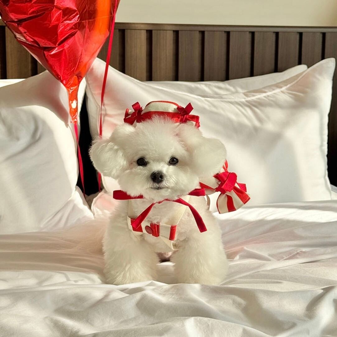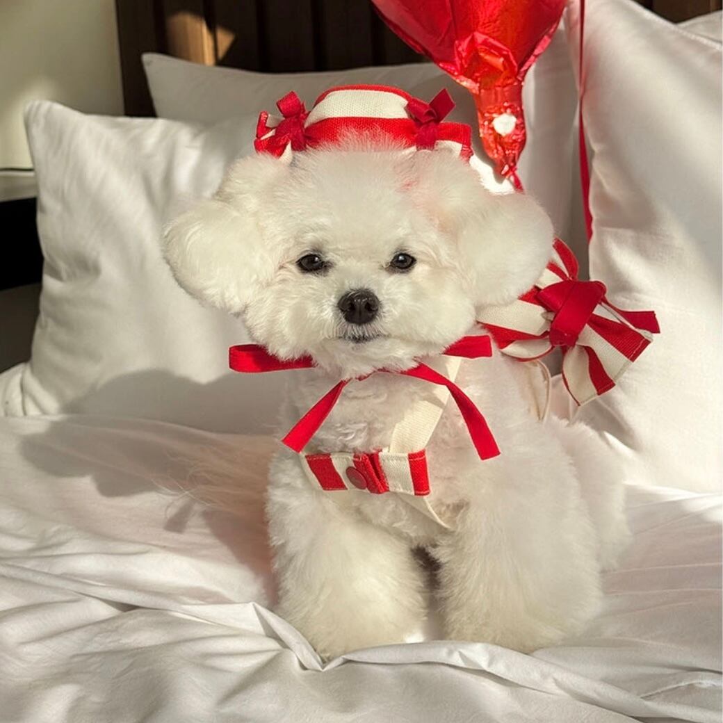顔の下でリボンを結ぶデザインが、愛らしさをさらにプラス。